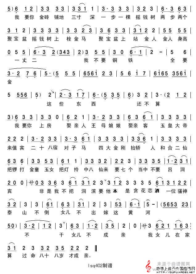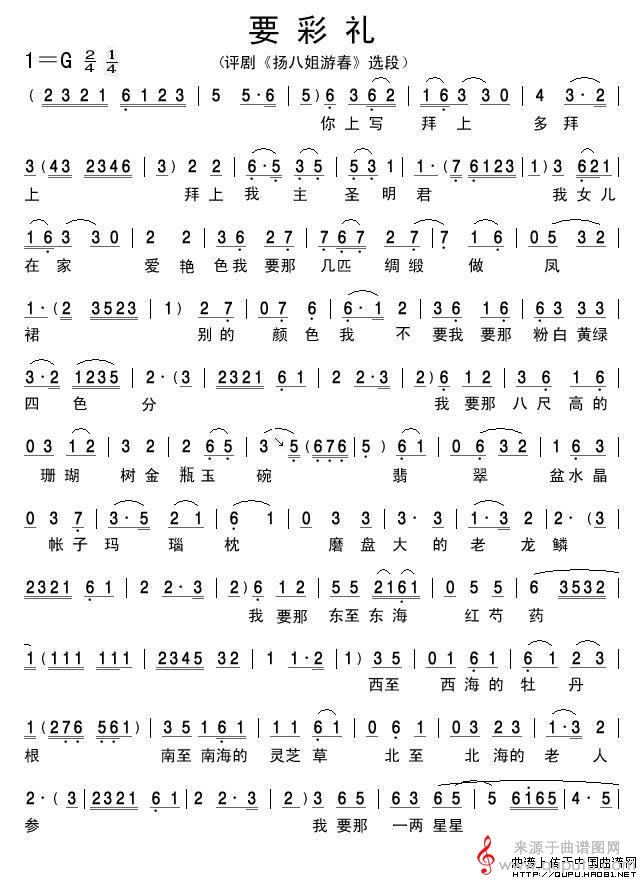 曲谱图网为您提供要彩礼(《扬八姐游春》选段)找谱子,就上曲谱图网。