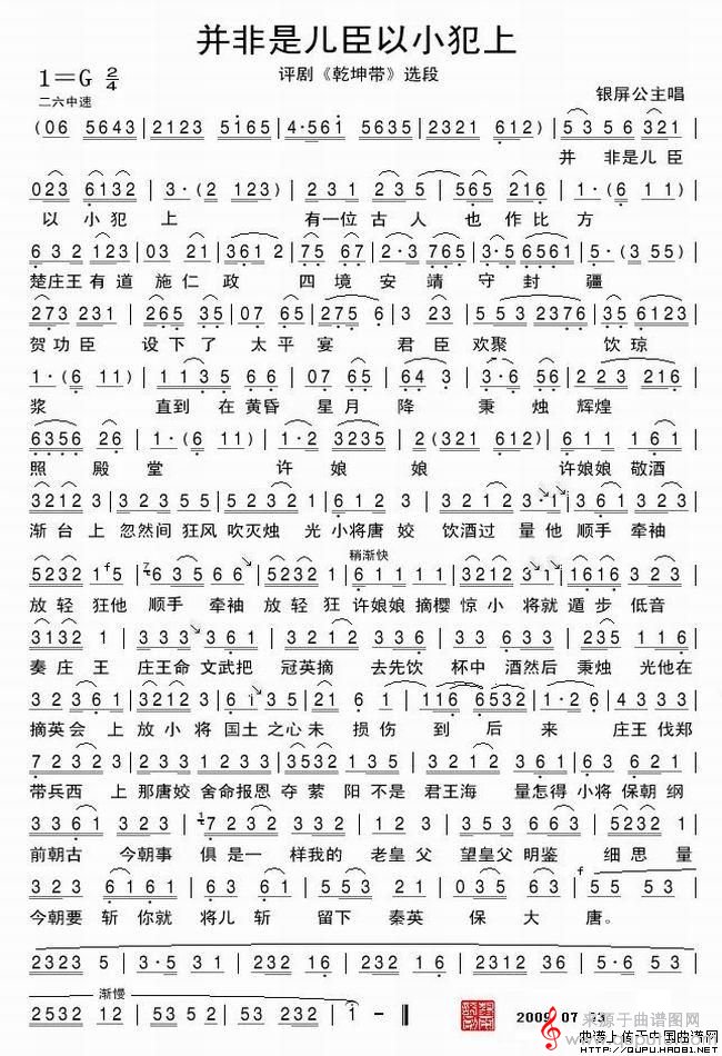曲谱图网为您提供并非是儿臣以小犯上(《乾坤带》选段)找谱子,就上曲谱图网。