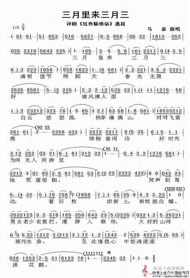 曲谱图网为您提供三月里来三月三(《红色联络站》选段)找谱子,就上曲谱图网。