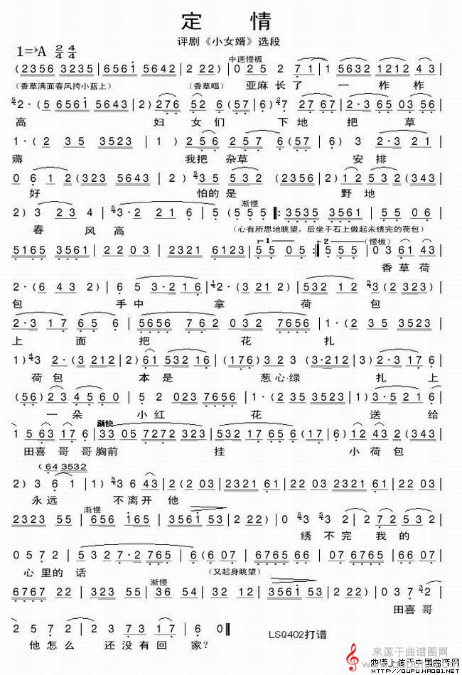 曲谱图网为您提供定情(《小女婿》选段)找谱子,就上曲谱图网。