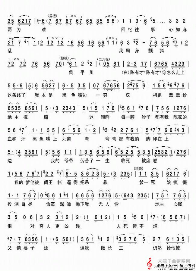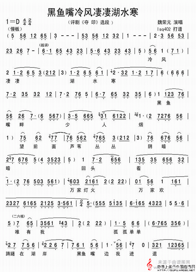 曲谱图网为您提供黑鱼嘴冷风凄凄湖水寒(《夺印》选段)找谱子,就上曲谱图网。