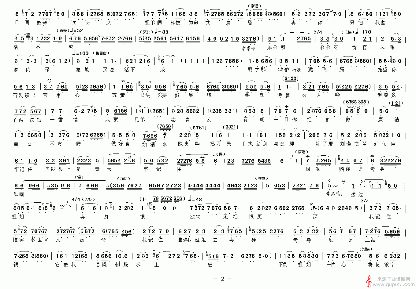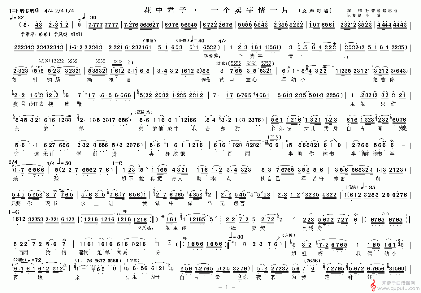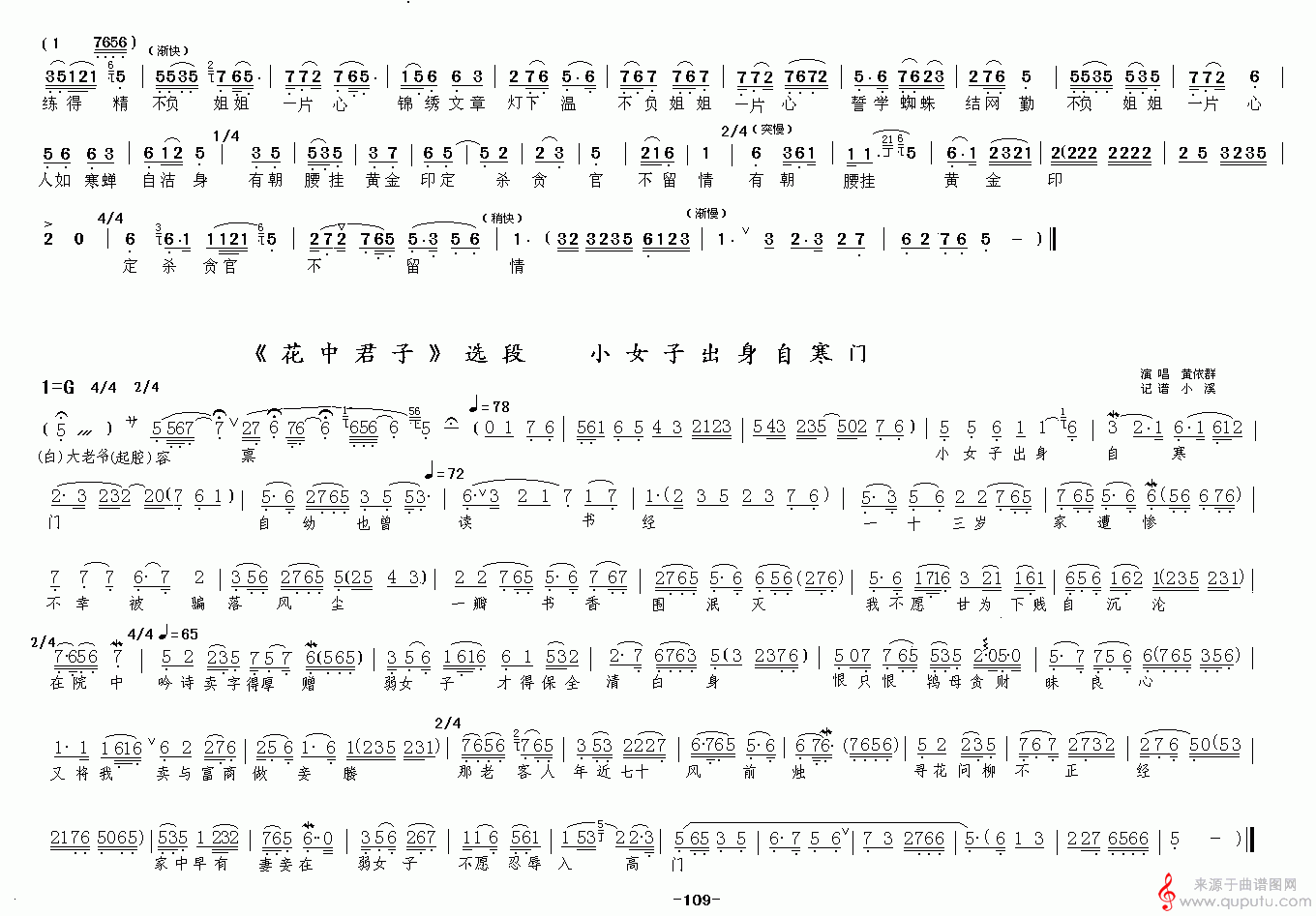 曲谱图网为您提供一个卖字情一片_小女子出身本寒门(《花中君子》选段)找谱子,就上曲谱图网。