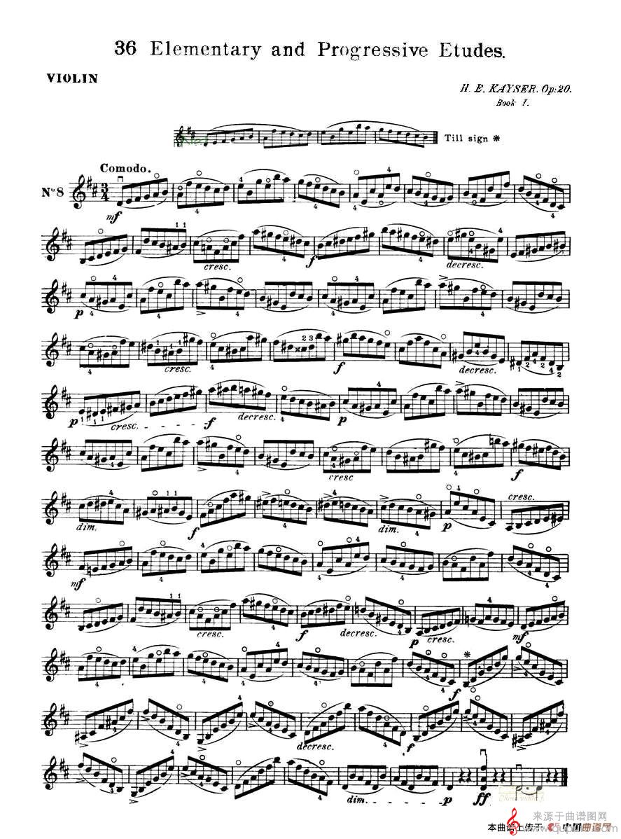 曲谱图网为您提供开塞(KAYSER 36首小提琴练习曲之8)找谱子,就上曲谱图网。