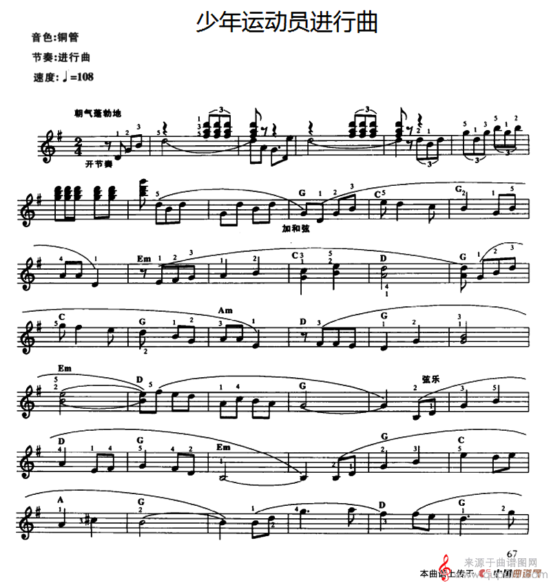 少年运动员进行曲(电子琴演奏伴奏五线谱)