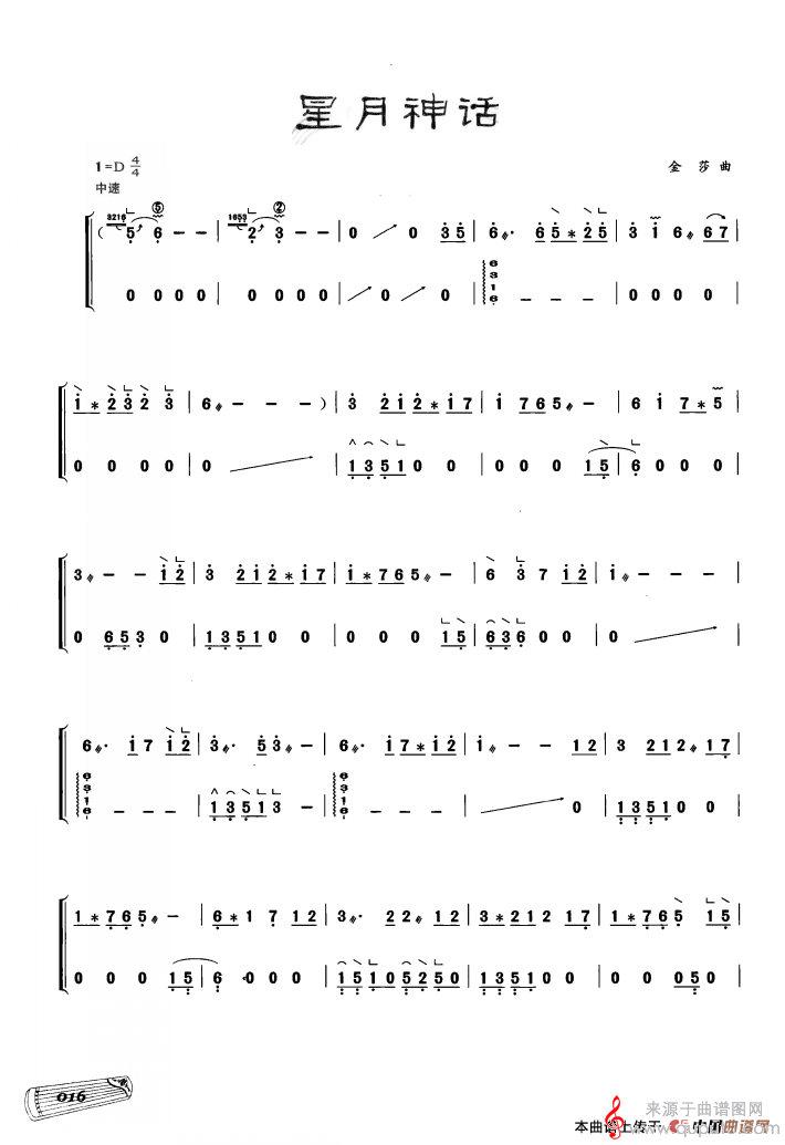 曲谱图网为您提供古筝独奏:星月神话(星月神话简谱练习)找谱子,就上曲谱图网。