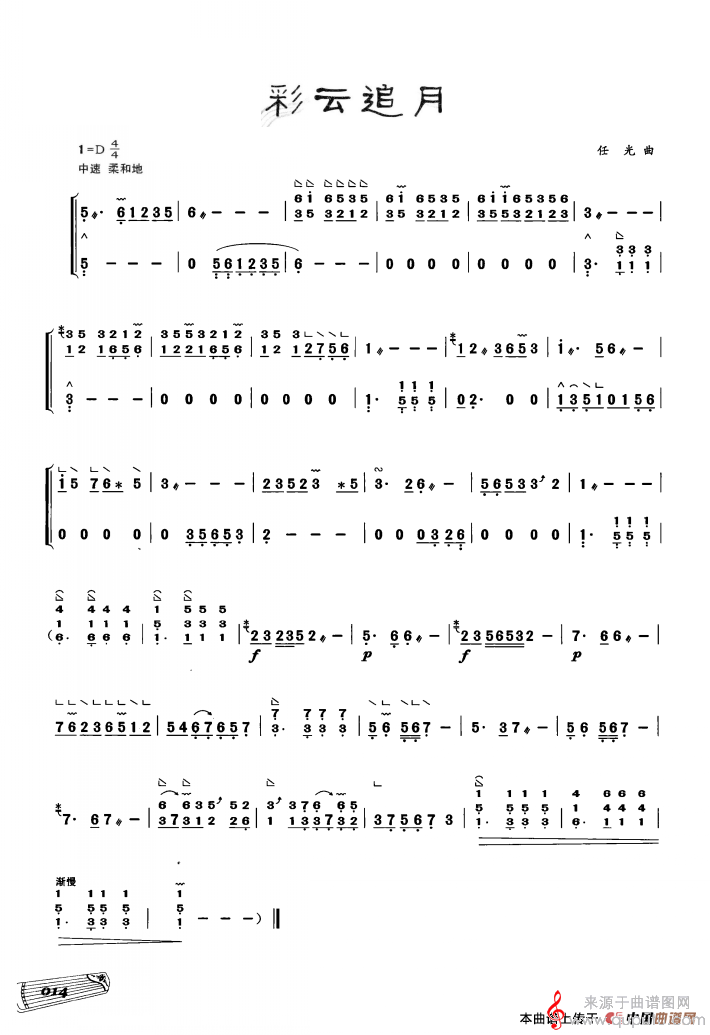 曲谱图网为您提供古筝独奏:彩云追月(彩云追月简谱曲谱教学)找谱子,就上曲谱图网。