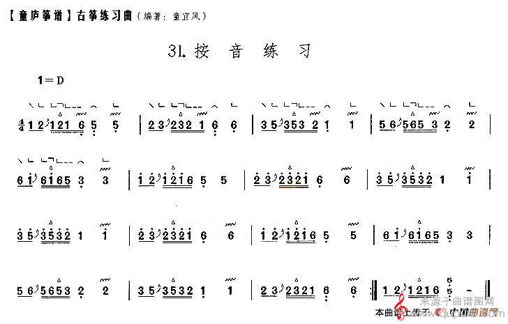童庐筝谱:31.按音练习简谱