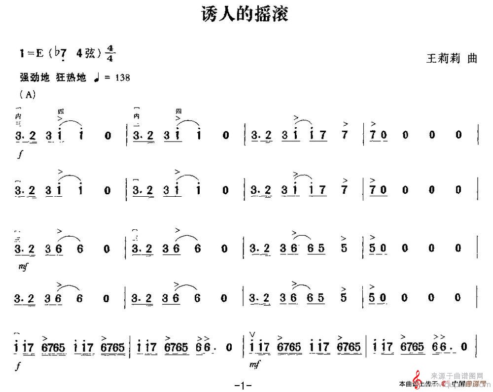 曲谱图网为您提供诱人的摇滚简谱(诱人的摇滚二胡演奏曲谱)找谱子,就上曲谱图网。