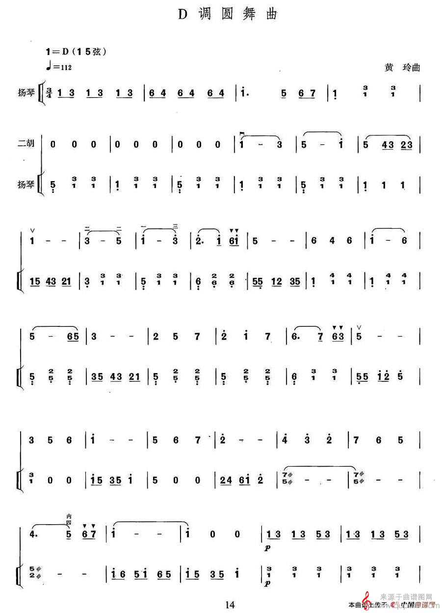 二胡谱D调圆舞曲(扬琴伴奏谱歌谱曲谱简谱)