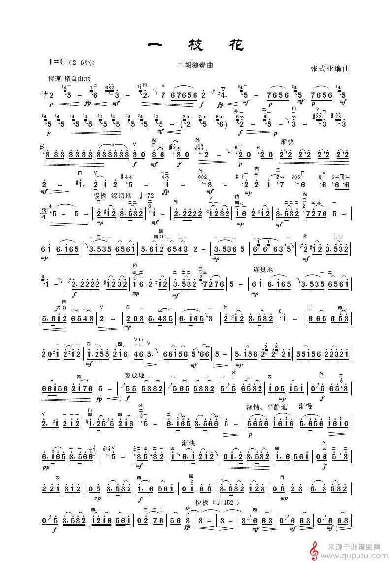 曲谱图网为您提供一枝花(民间乐曲一枝花二胡独奏简谱多版本)找谱子,就上曲谱图网。