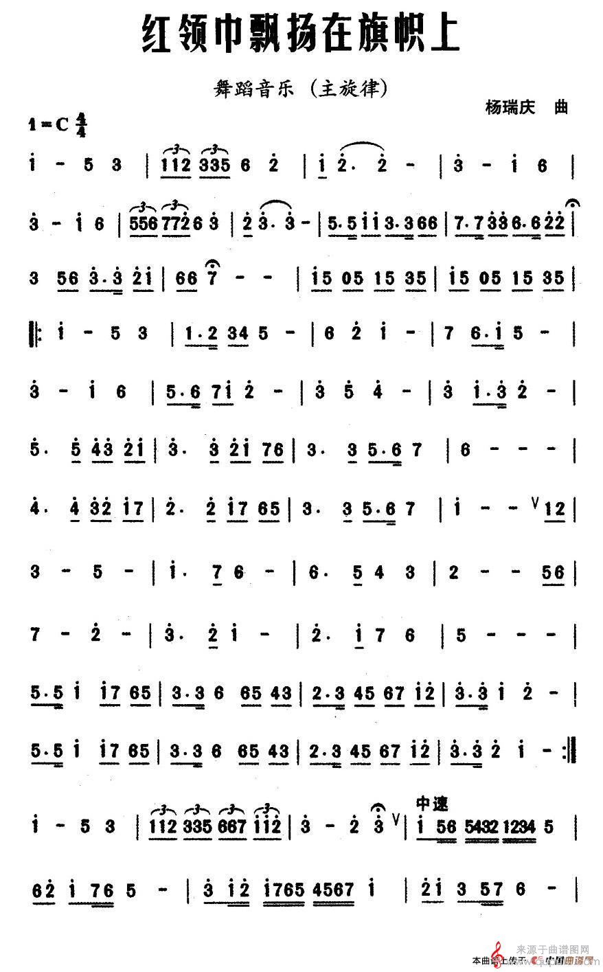 曲谱图网为您提供红领巾飘扬在旗帜上(舞蹈音乐主旋律谱)找谱子,就上曲谱图网。