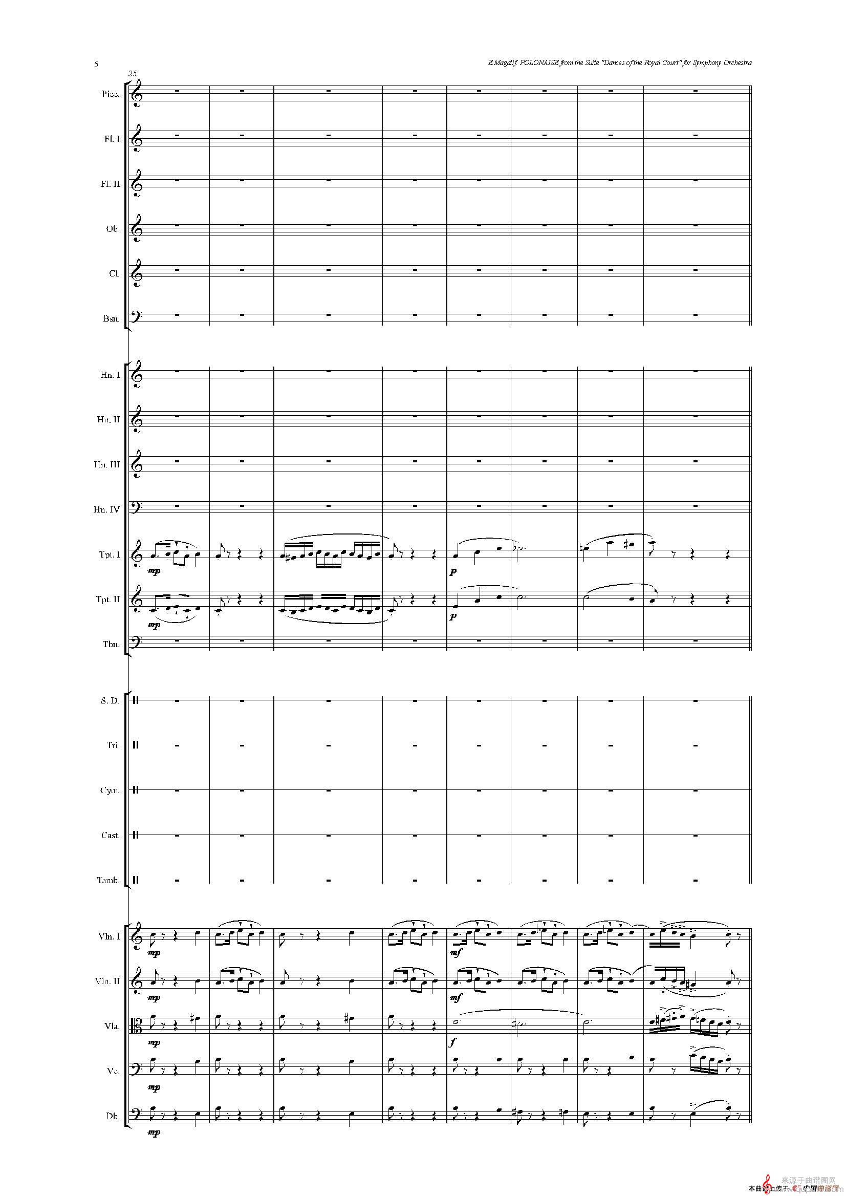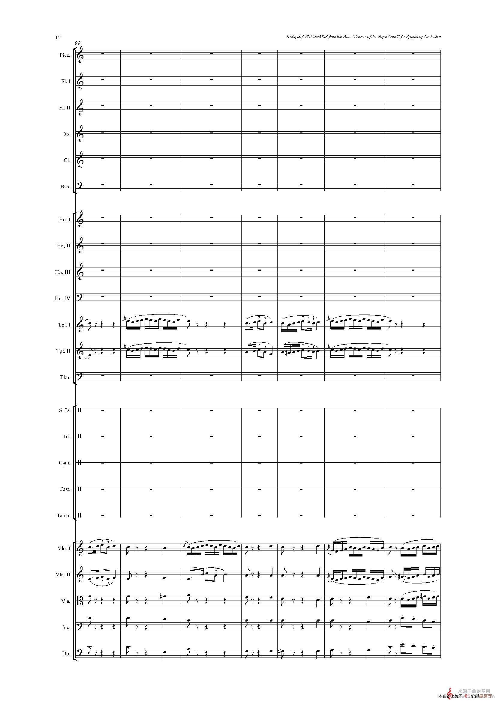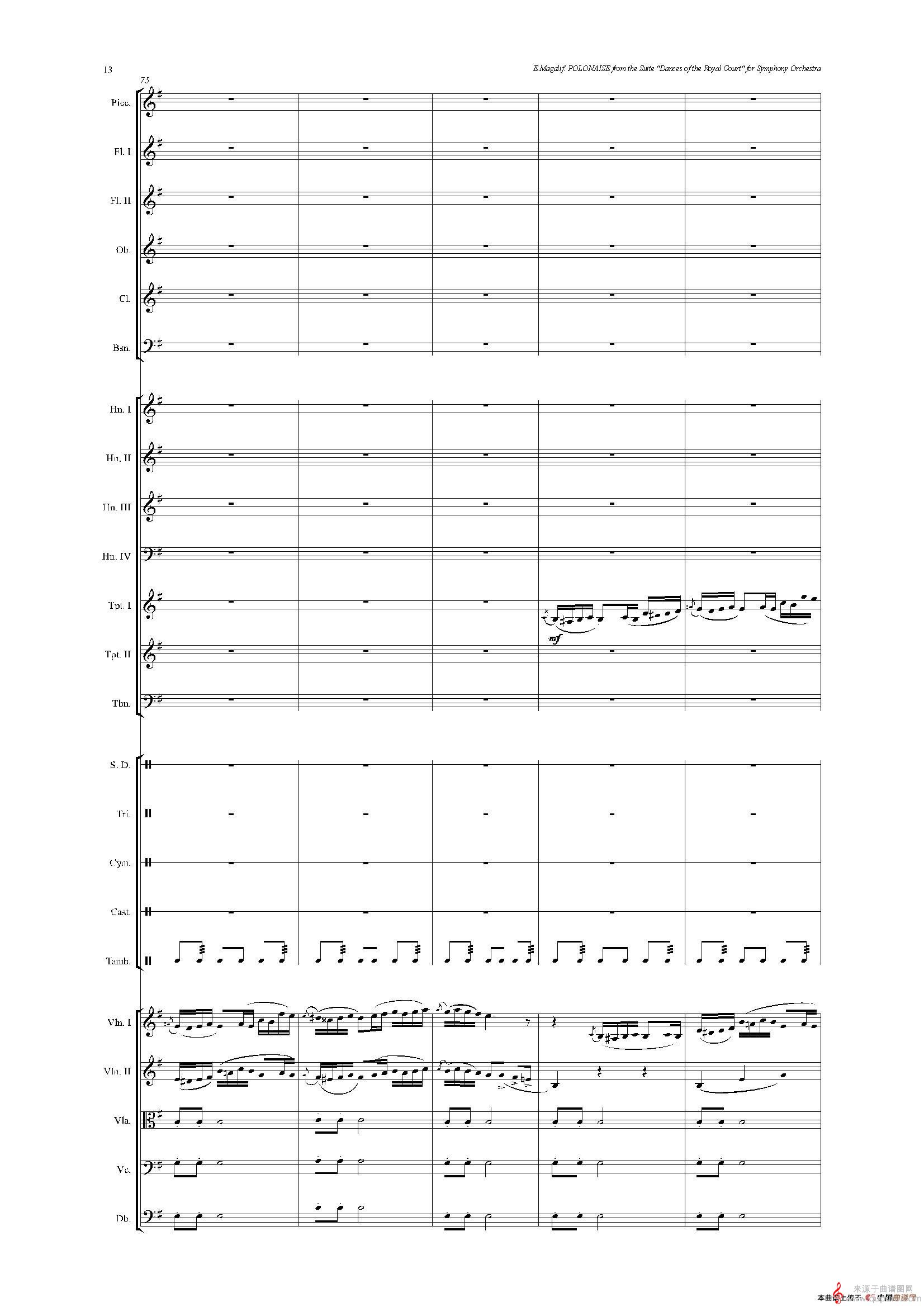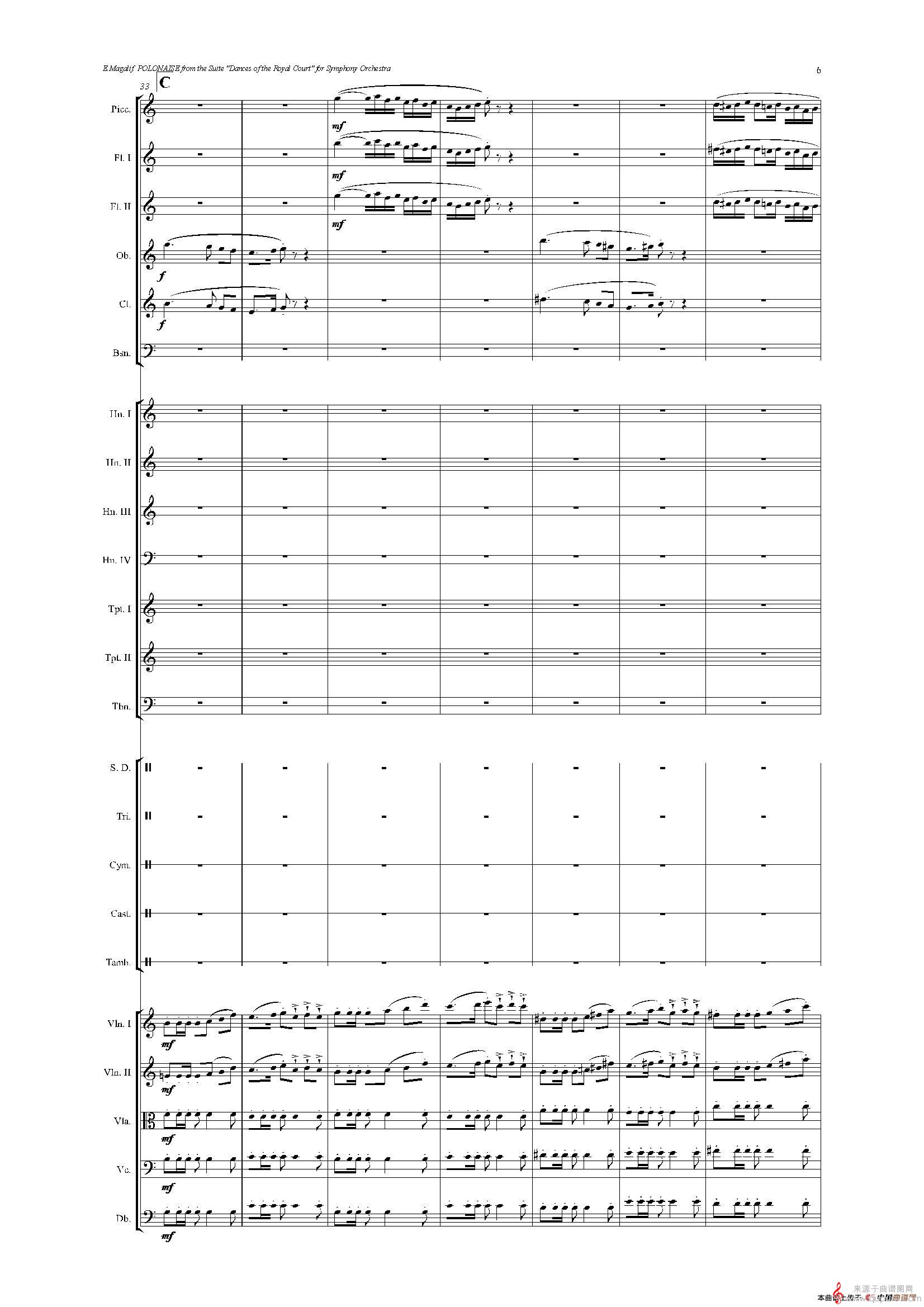 曲谱图网为您提供《来自皇室的舞蹈》管弦乐套曲:1.POLONAISE(波兰舞曲)(总谱)找谱子,就上曲谱图网。