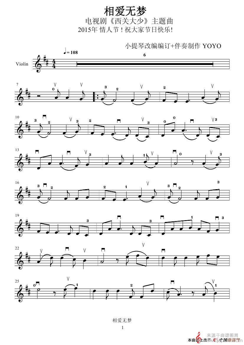 曲谱图网为您提供相爱无梦(小提琴谱)找谱子,就上曲谱图网。