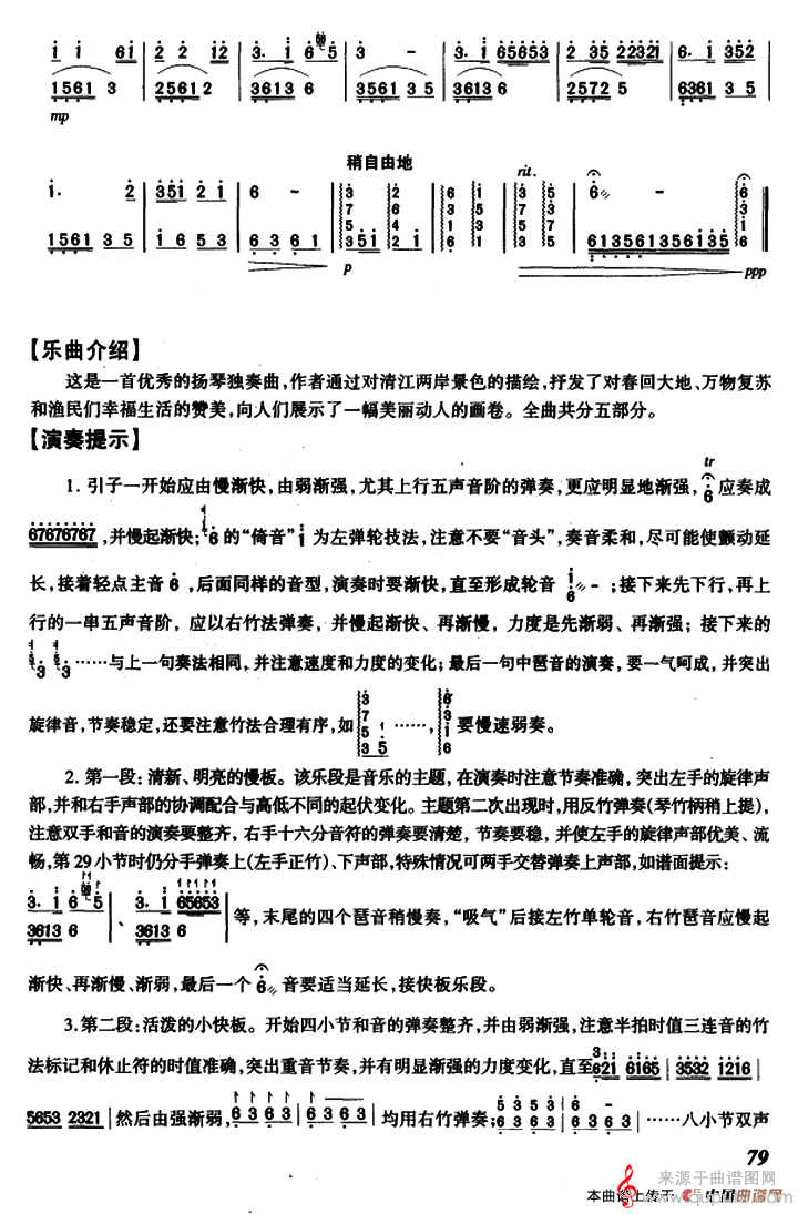 曲谱图网为您提供春到清江(扬琴独奏简谱完整版)找谱子,就上曲谱图网。