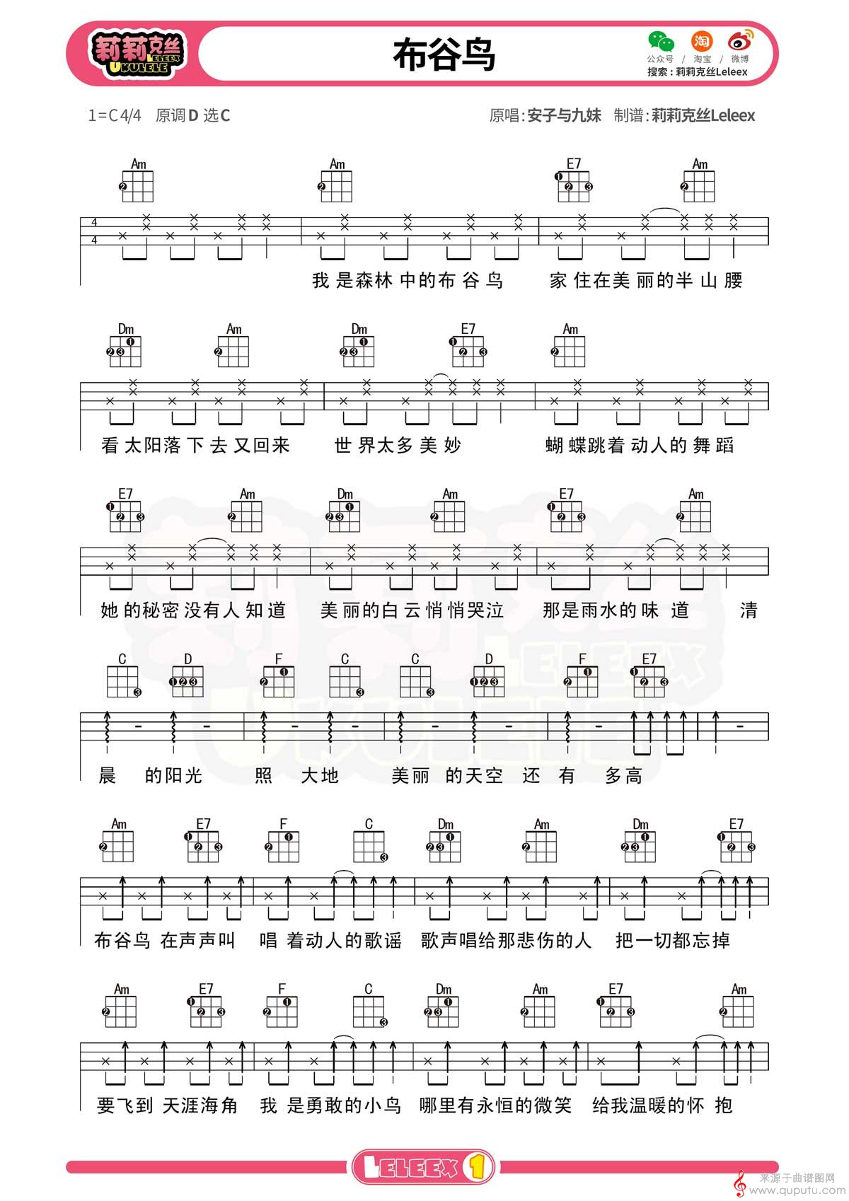 曲谱图网为您提供布谷鸟(布谷鸟尤克里里和弦伴奏弹唱教学四线谱)找谱子,就上曲谱图网。