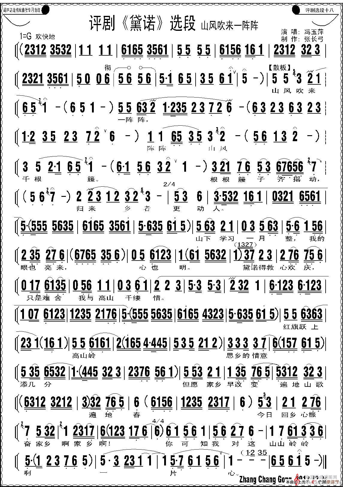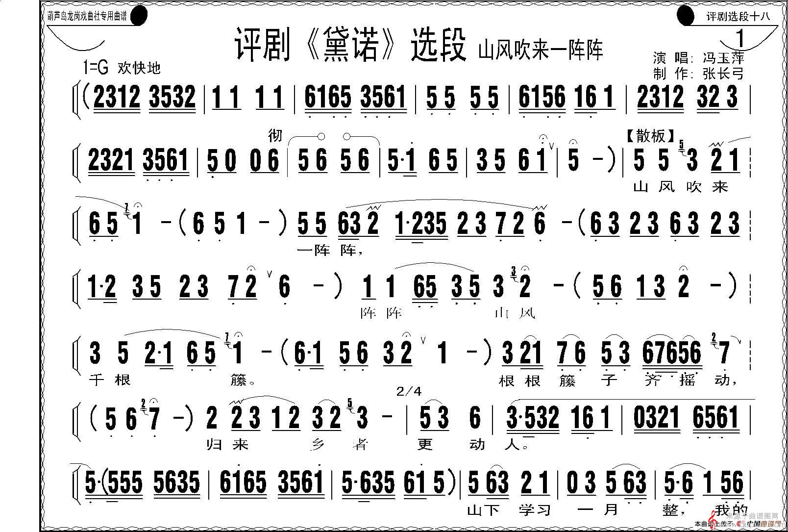 曲谱图网为您提供山风吹来一阵阵(评剧《黛诺》选段)找谱子,就上曲谱图网。