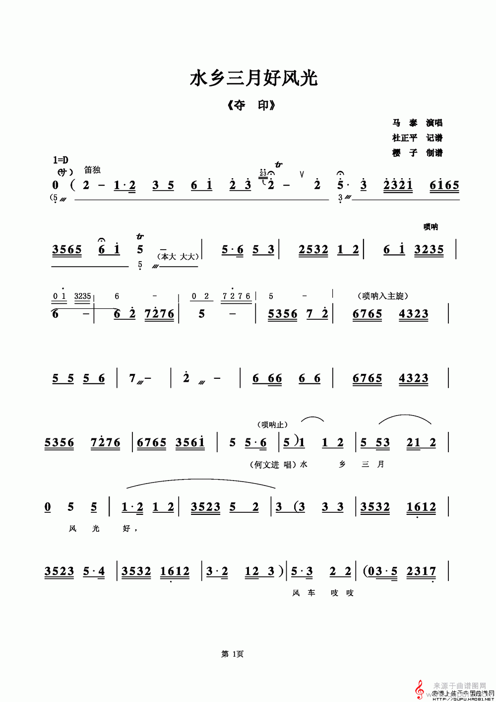 曲谱图网为您提供水乡三月好风光(《夺印》选段)找谱子,就上曲谱图网。