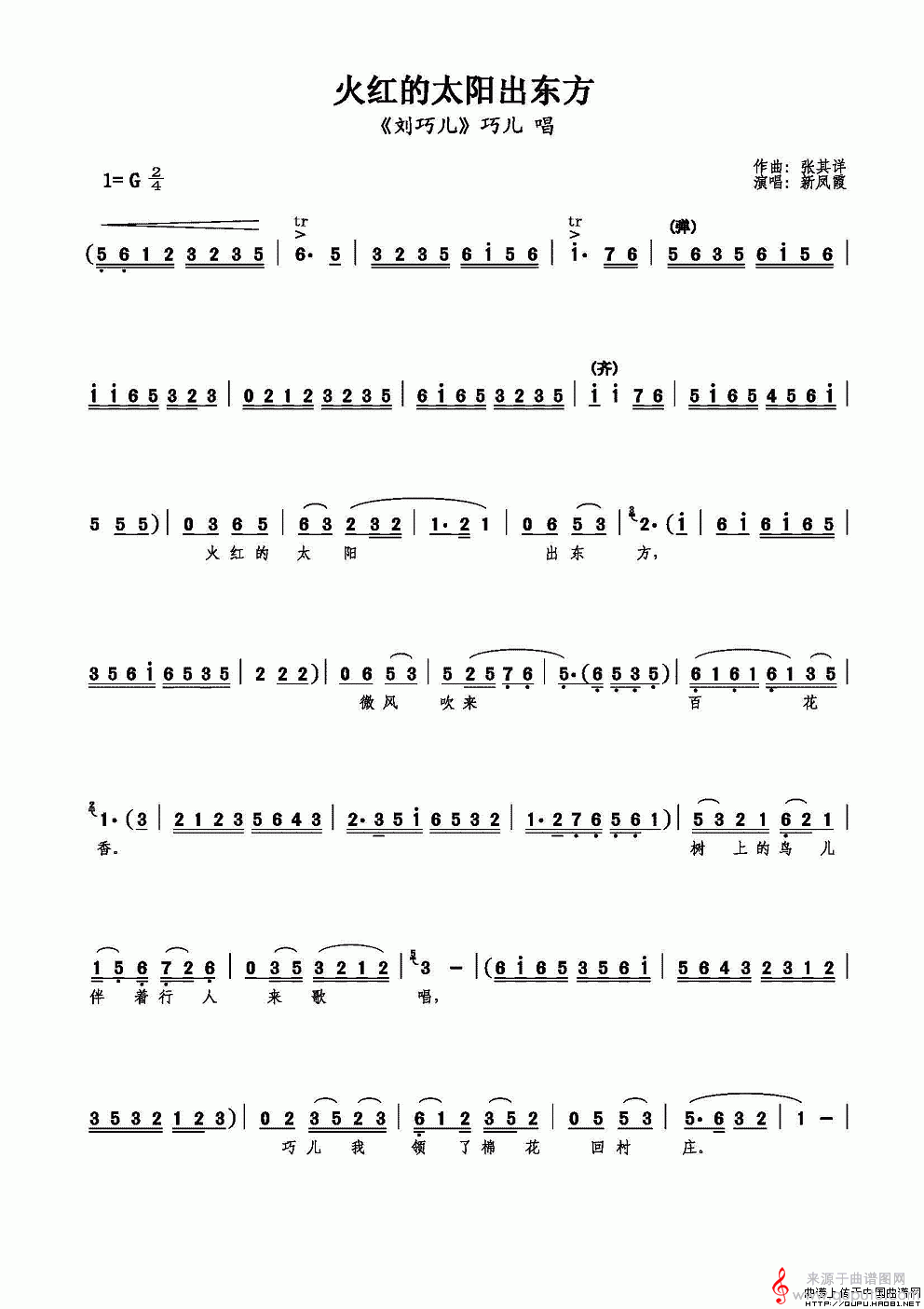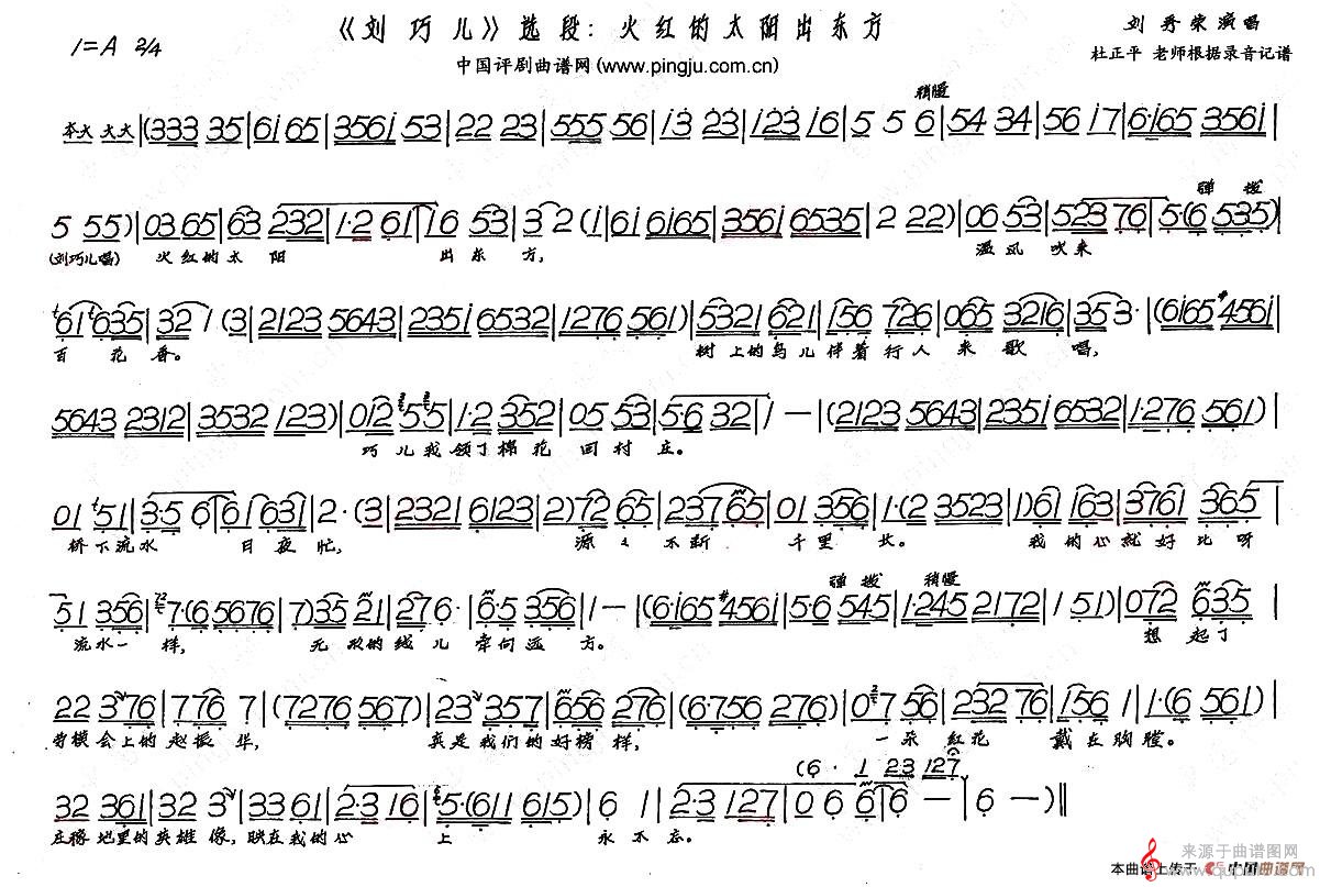 曲谱图网为您提供火红的太阳出东方(《刘巧儿》选段)找谱子,就上曲谱图网。