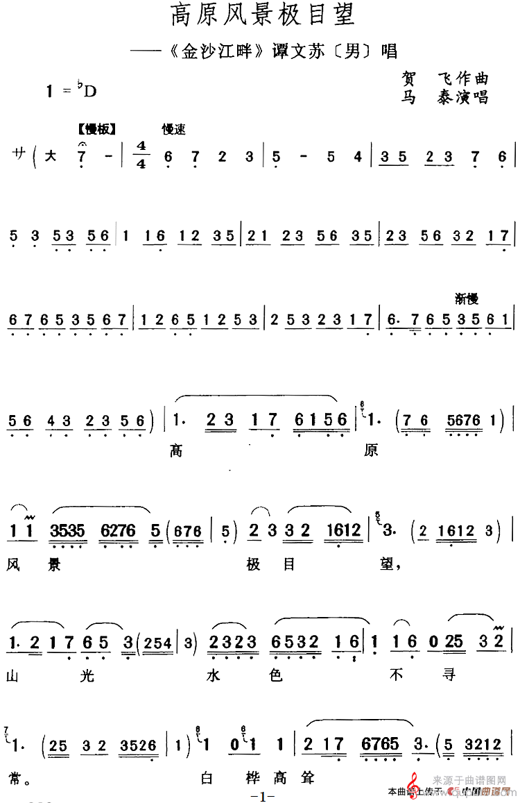 曲谱图网为您提供高原风景极目望(《金沙江畔》谭文苏唱段)找谱子,就上曲谱图网。