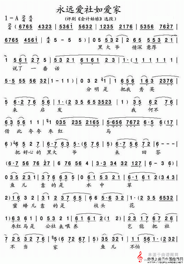 曲谱图网为您提供永远爱社如爱家(《会计姑娘》选段)找谱子,就上曲谱图网。