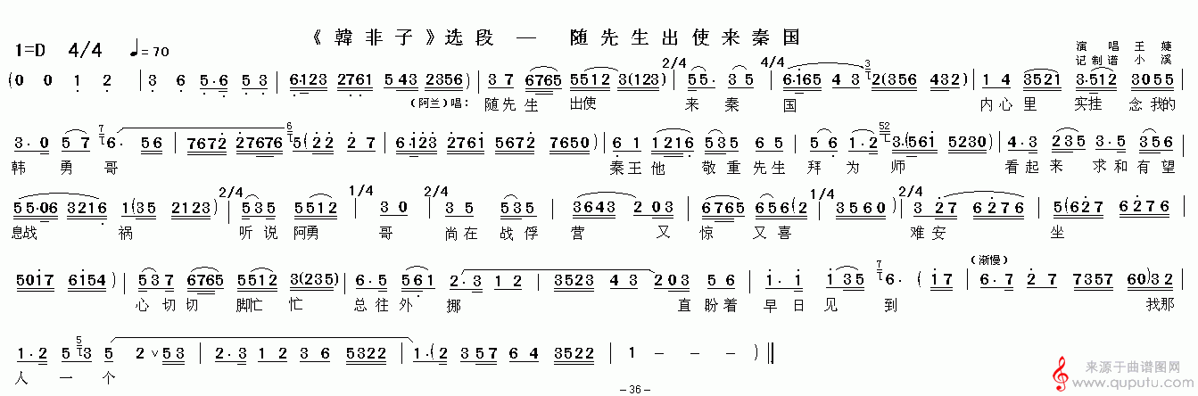 曲谱图网为您提供随先生出使来秦国(选自《韩非子》唱段)找谱子,就上曲谱图网。