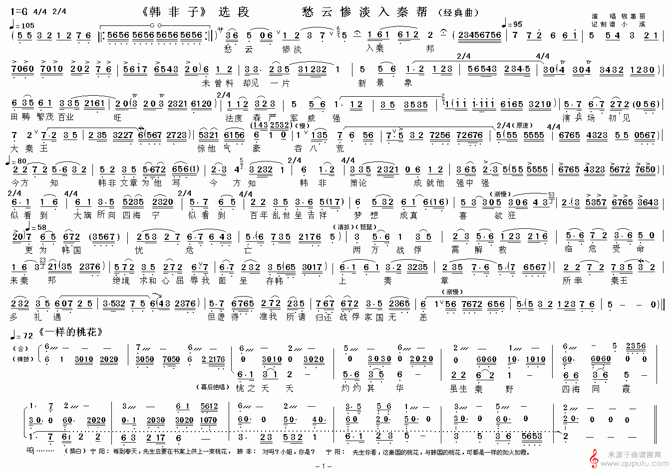 曲谱图网为您提供愁云惨淡入秦邦(选自《韩非子》唱段)找谱子,就上曲谱图网。