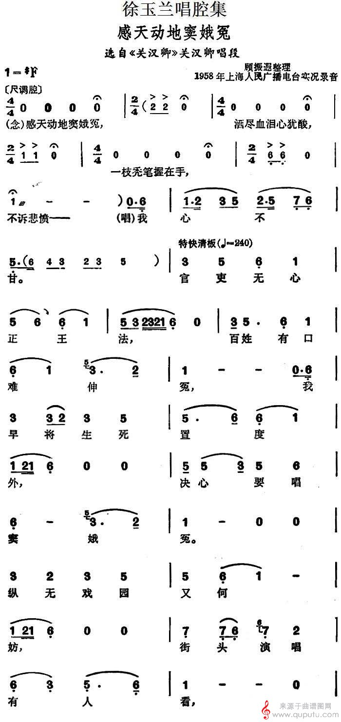曲谱图网为您提供感天动地窦娥冤(摘选自《关汉卿》唱段)找谱子,就上曲谱图网。