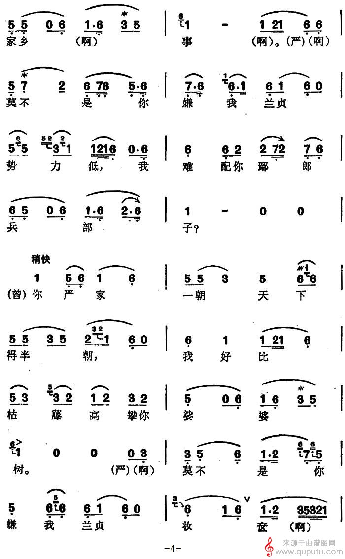 曲谱图网为您提供各人自有各人事(摘自《盘夫》对唱段)找谱子,就上曲谱图网。